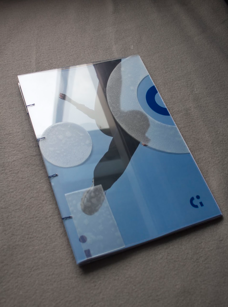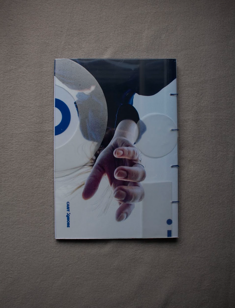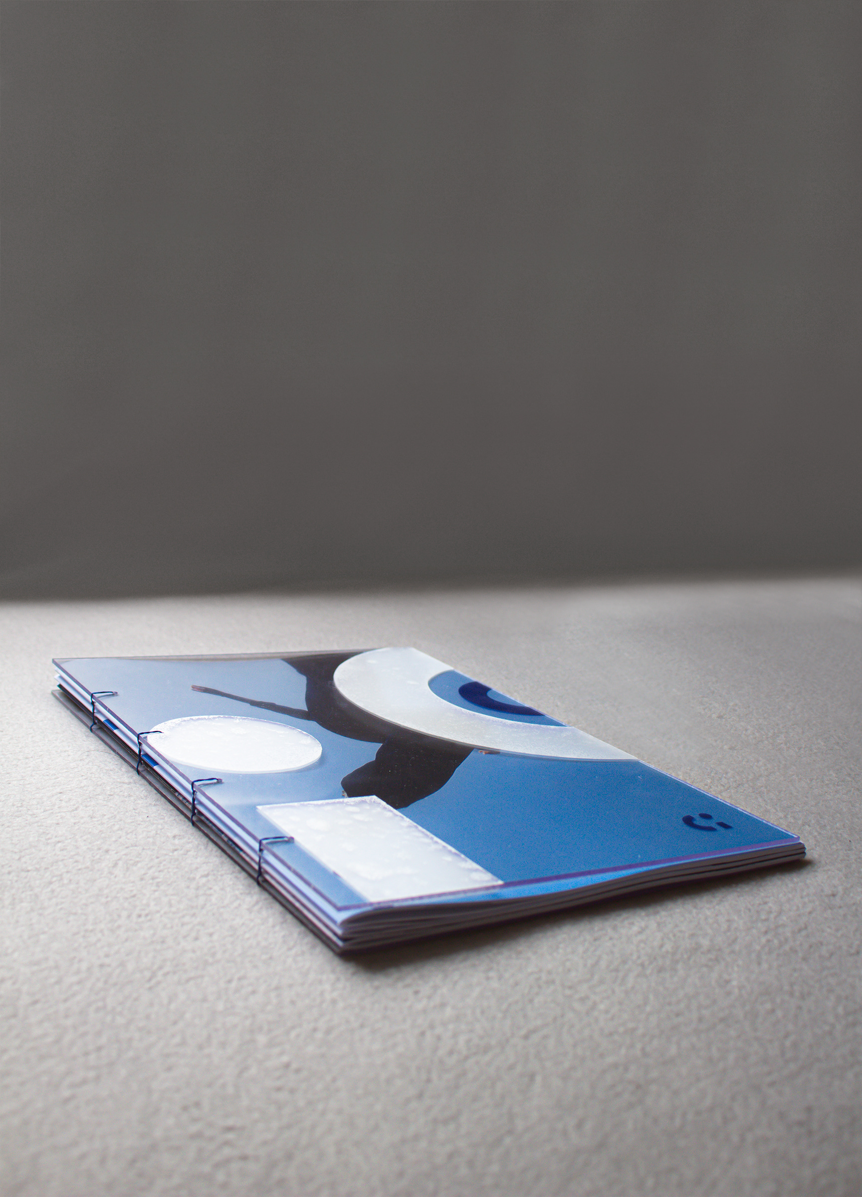 Concept boek | Papier, transparant plastic en blauw garen |