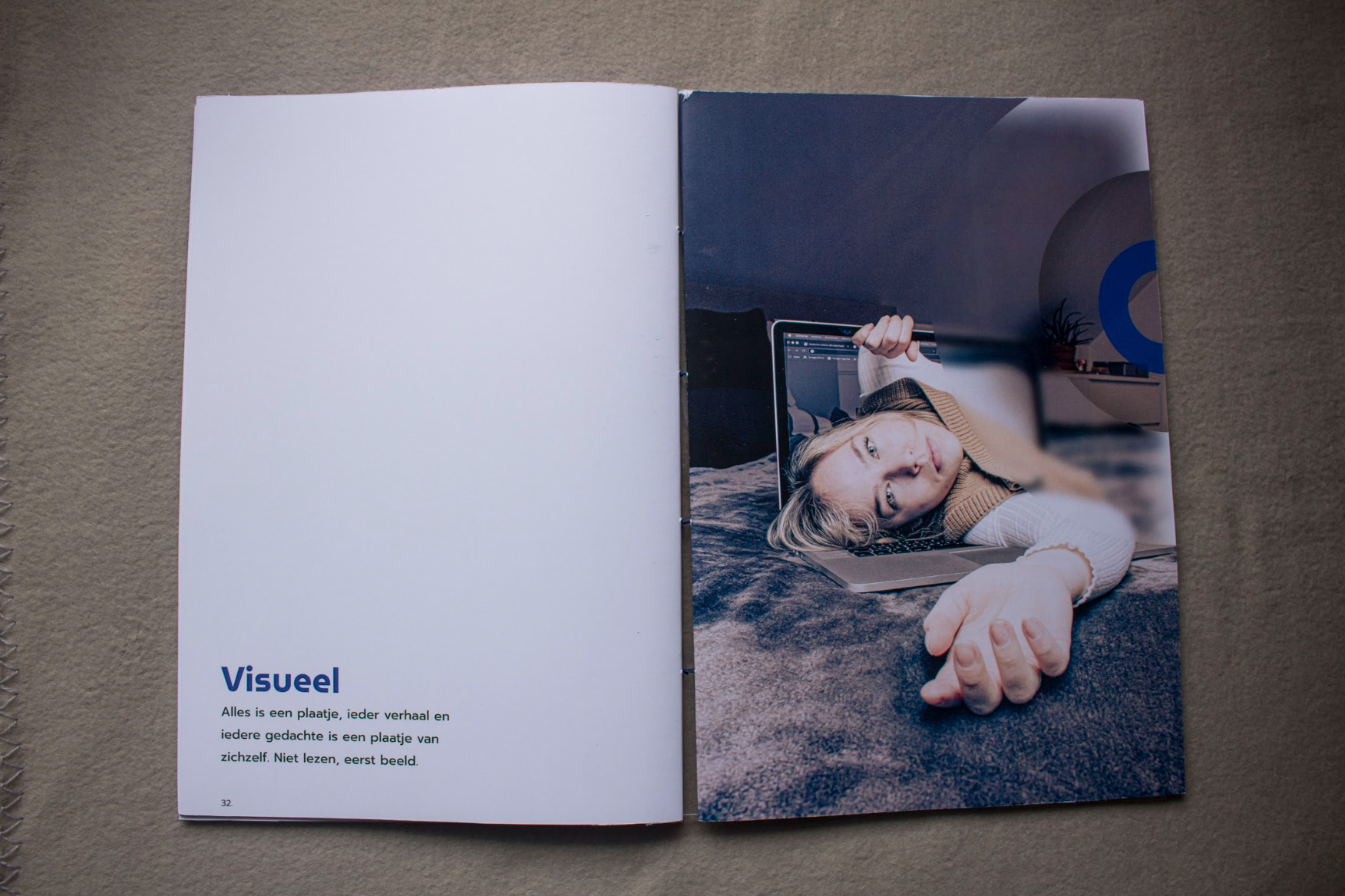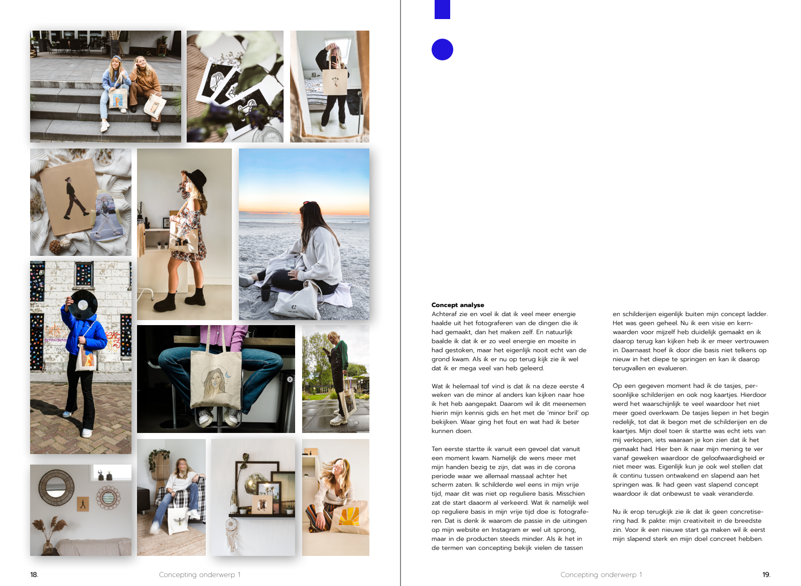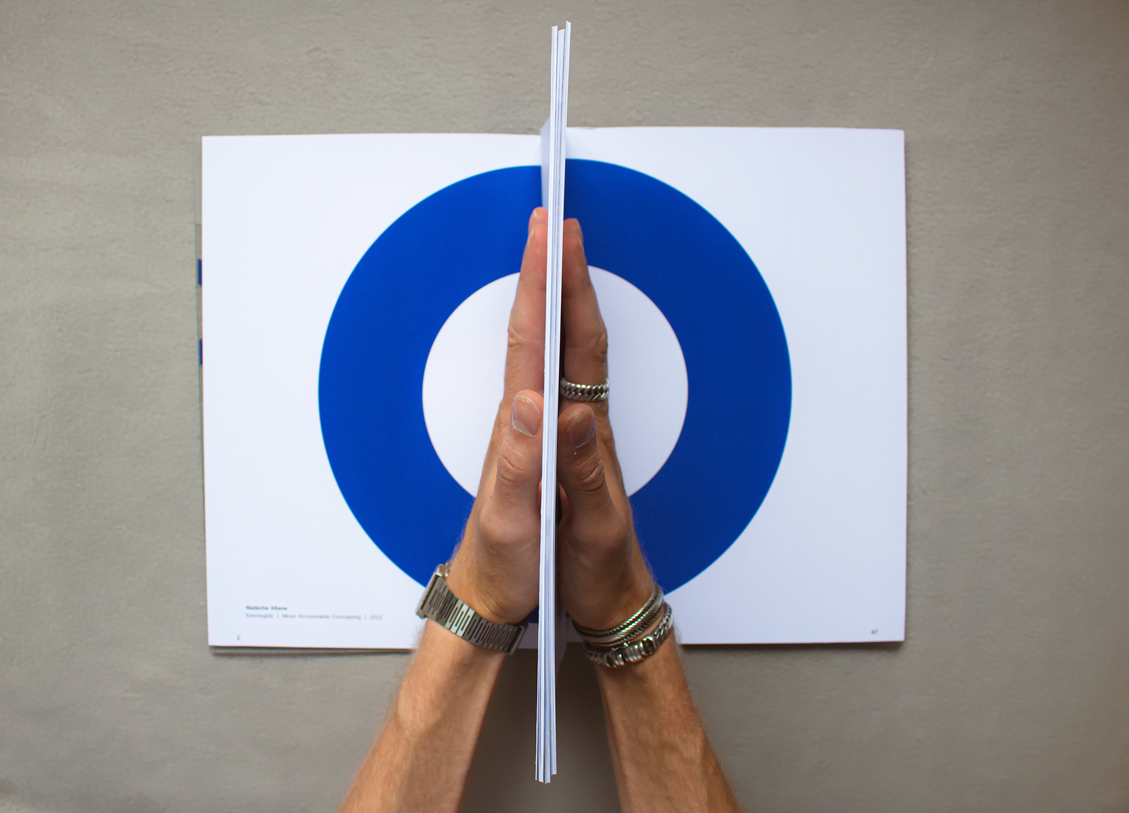 Concept boek | Papier, transparant plastic en blauw garen |