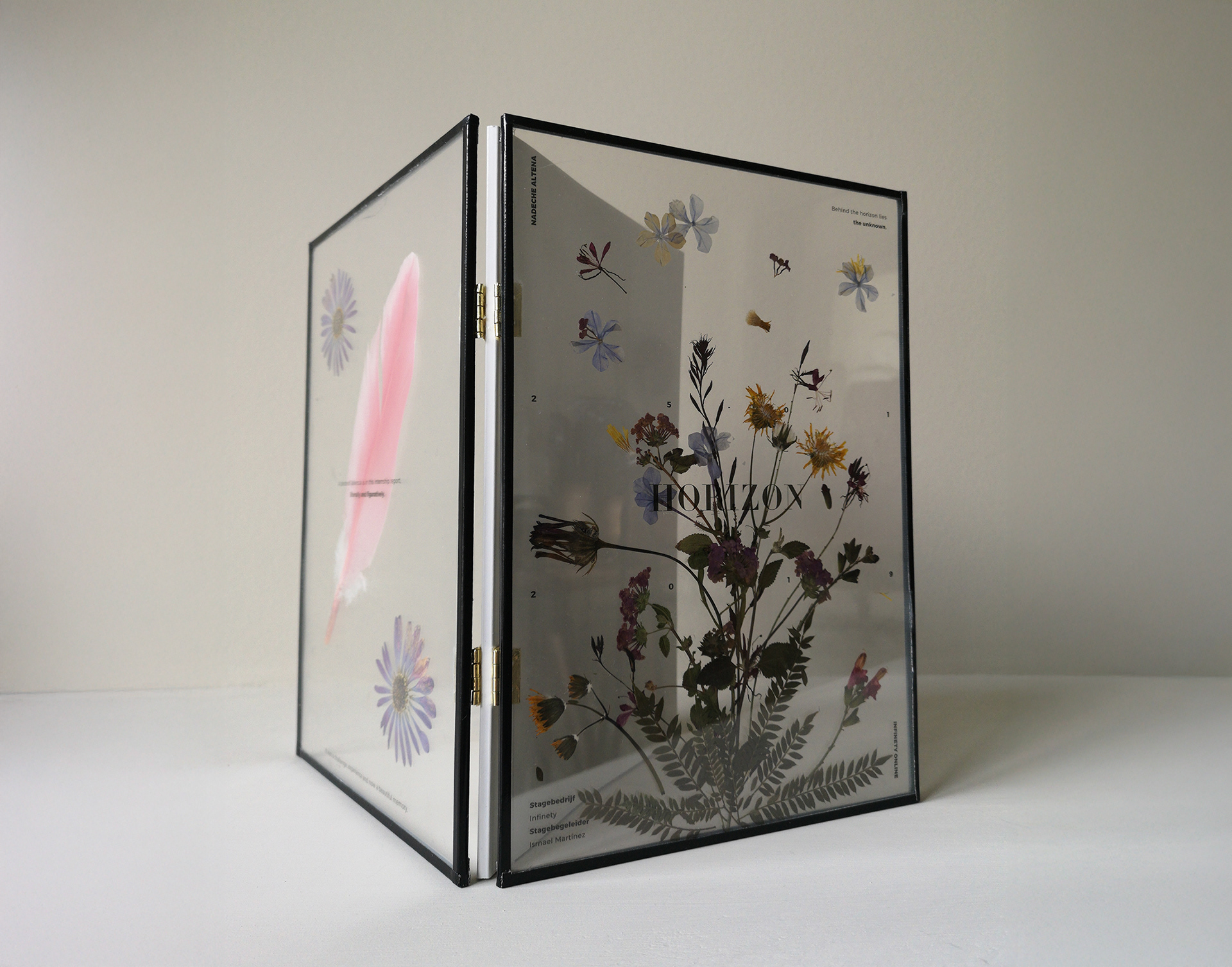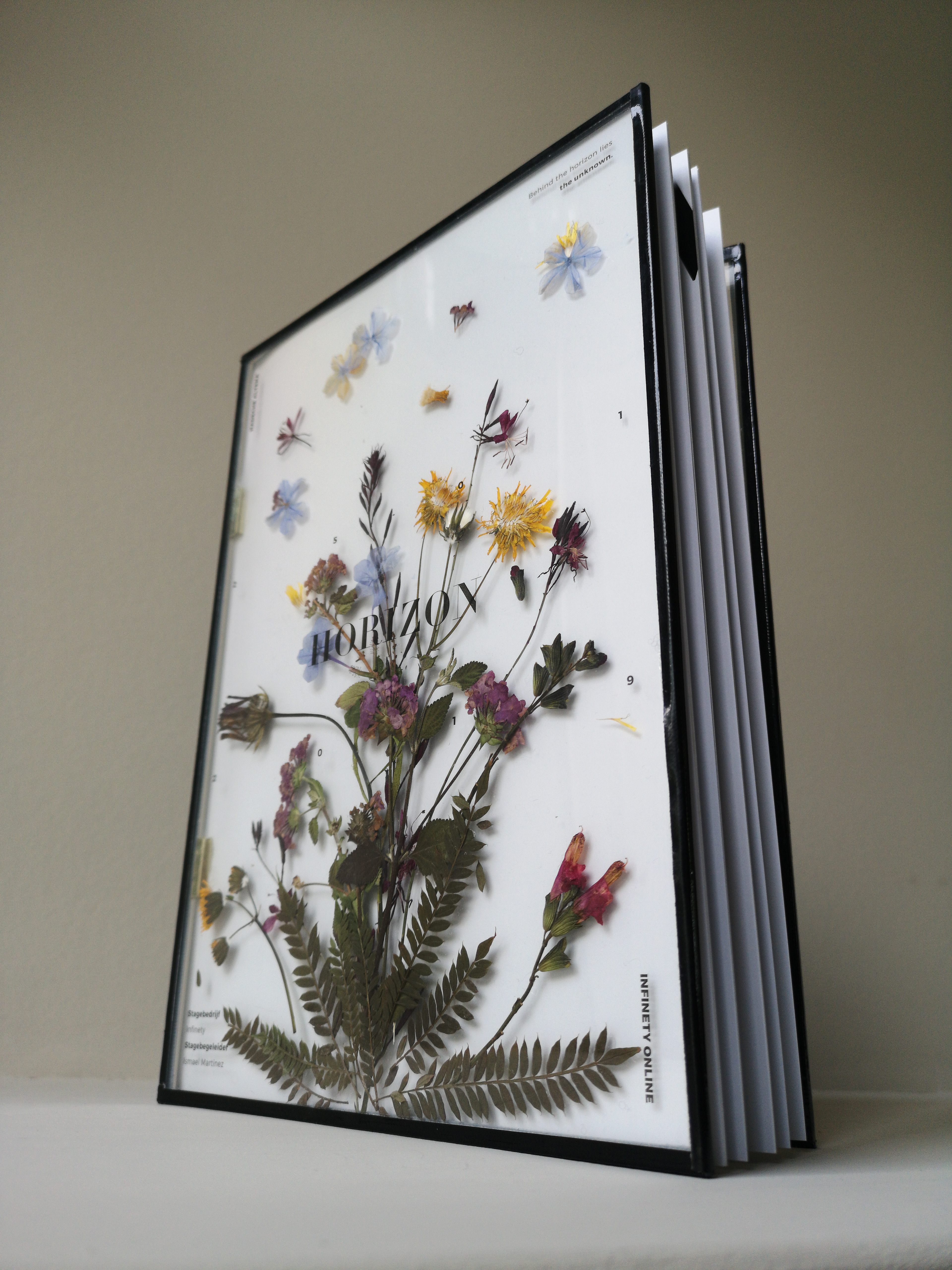Boek | stageverslag Valencia | A4 | gedroogde bloemen, plexiglas, boek | 2019